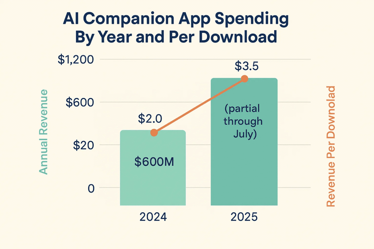 This niche segment of the AI market has already generated $82 million in consumer spending during the first half of 2025 and is on track to exceed $120 million by year’s end.